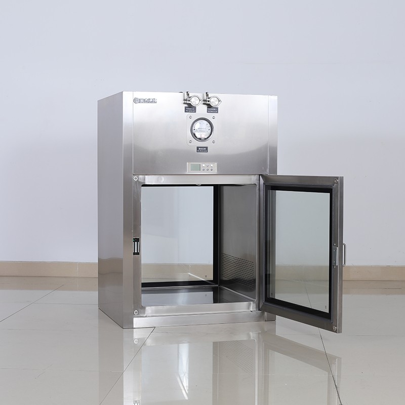 3. Linisin ang window ng paglilipat: Buksan ang isa sa mga pinto, ilagay ang mga kalakal sa window ng paglilipat, isara ang magkabilang pinto, at i-on ang switch ng fan. Pagkatapos marinig ang tunog ng bentilador, aabutin ng mga 5-30 minuto upang linisin ang panloob na hangin.